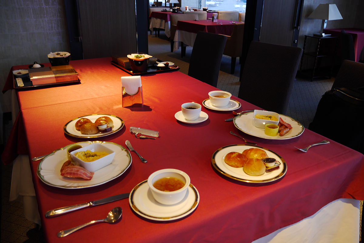 ห้องอาหาร SKY Restaurant ของโรงแรม Mutsu Grand Hotel จะมีให้เลือกอาหารเช้า 2 แบบ คือ แบบอเมริกัน และแบบญี่ปุ่น 1 คนจะเลือกได้ 1 แบบ แต่อาหารอื่นๆ สามารถตักรับประทานได้ไม่อั้น นั่งกินไปชมวิวไป ได้บรรยากาศยามเช้าของเมืองมุทสึ (Mutsu) มากๆ